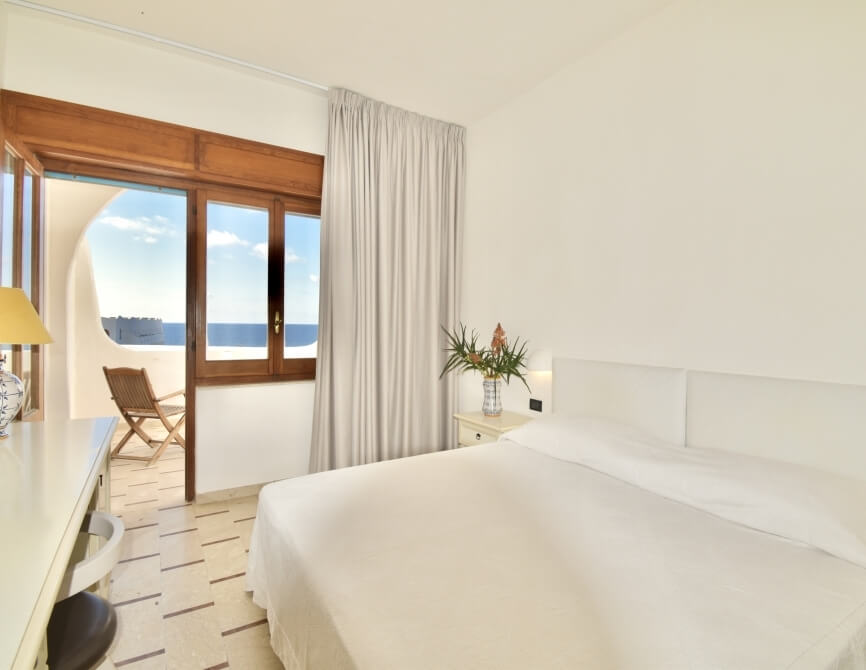 Ogni spazio gode del suo balconcino vista mare o interna mentre il bagno rimane in comune.